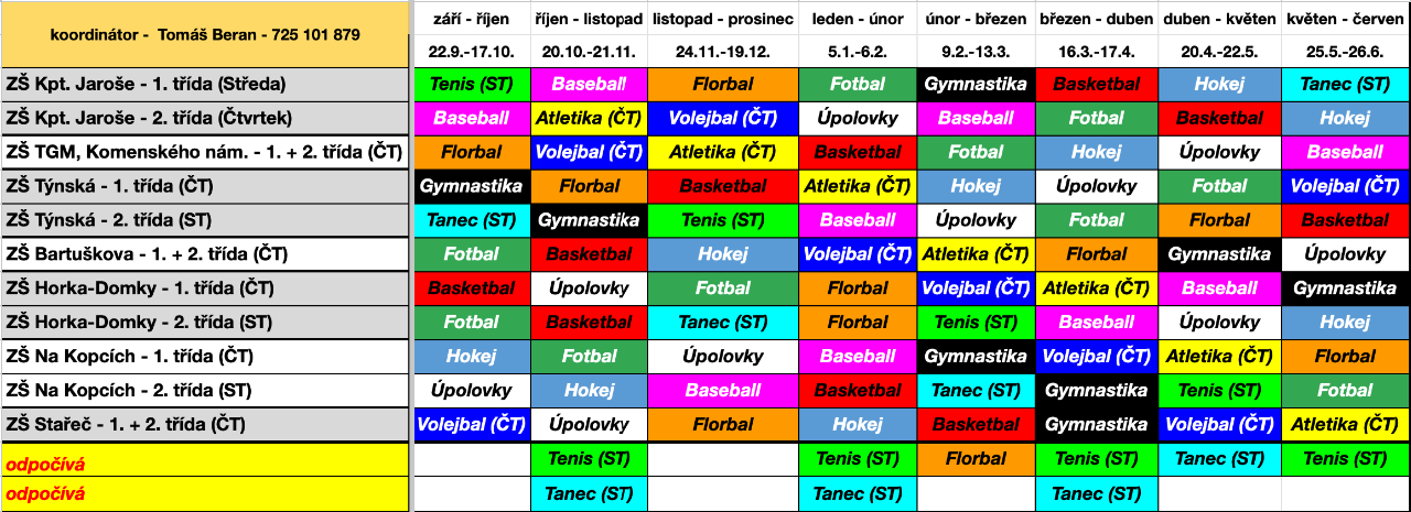 TRENÉŘI VE ŠKOLE - rotace sportů
