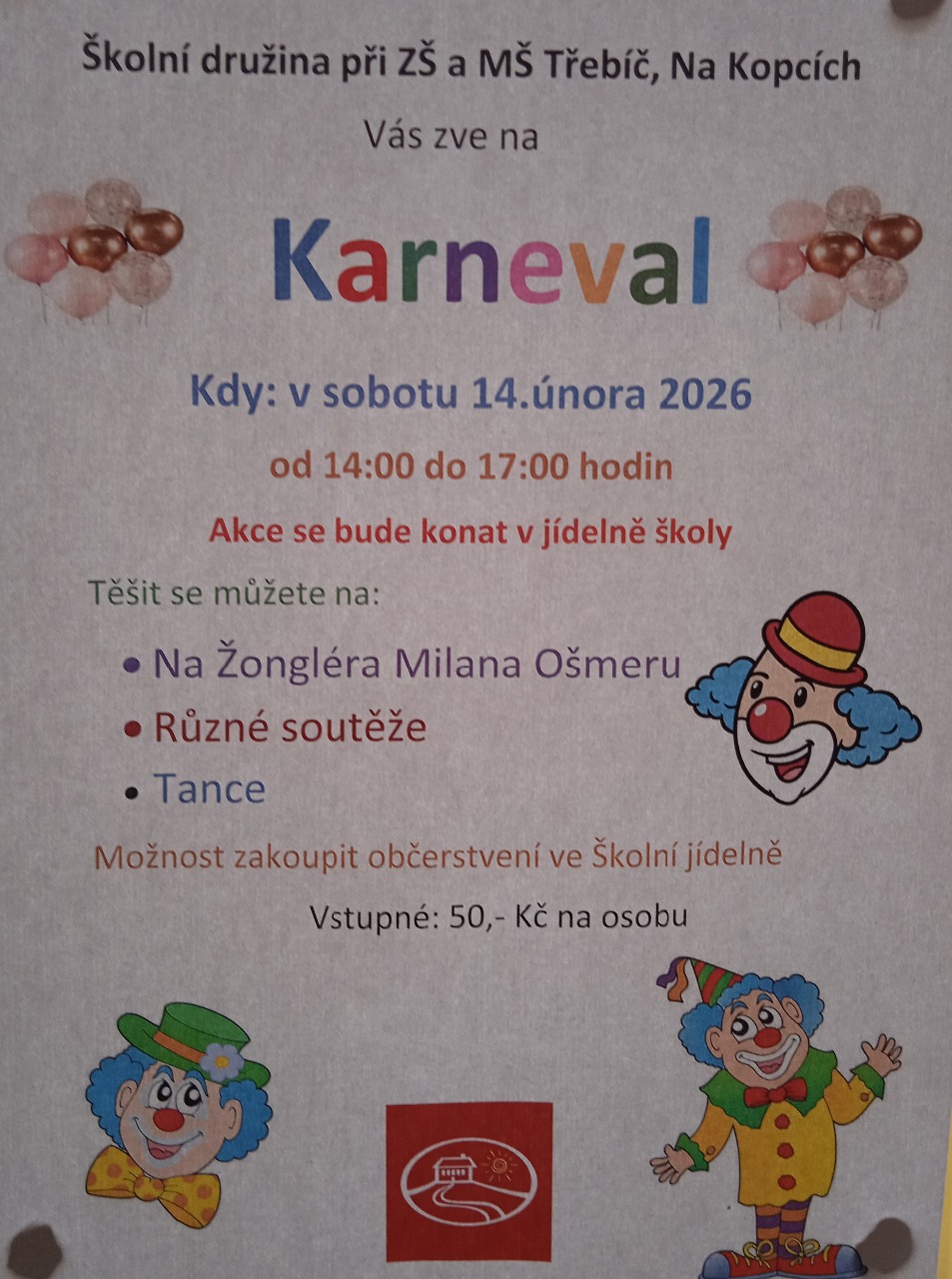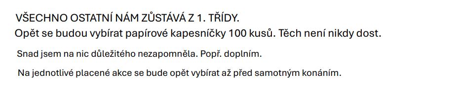 Ve 2. třídě nám byl přidělen termín 20. 11. 2025 - 29. 1. 2026 od 8:50 - 9:35. Bude nás čekat 9 lekcí po 100,-. Celkem kurzovné 900,- + počítat ještě s částkou za MHD.