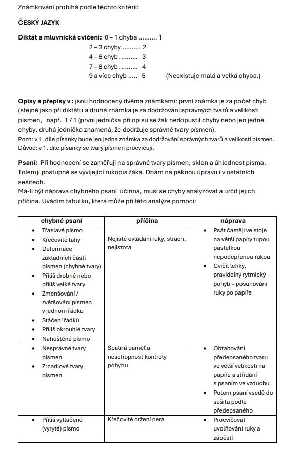 V hodnocení Vašeho dítěte využívám tyto kroky: