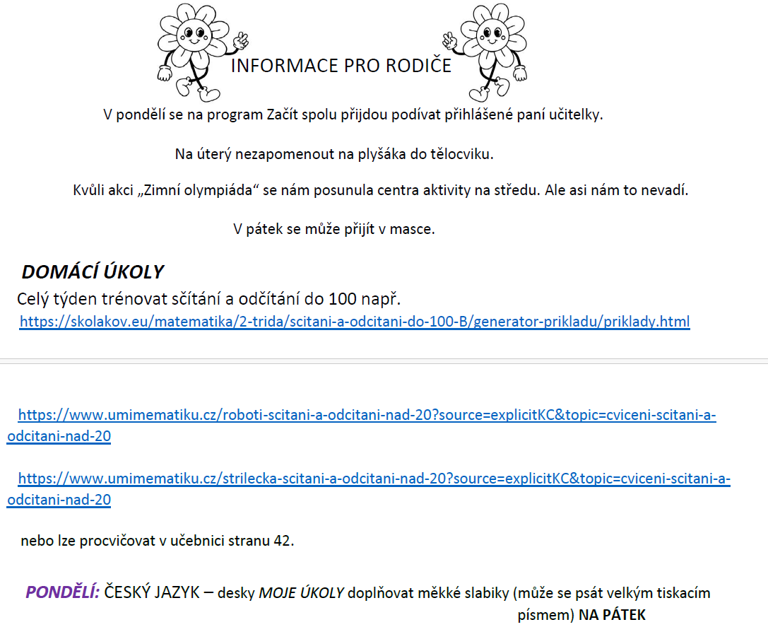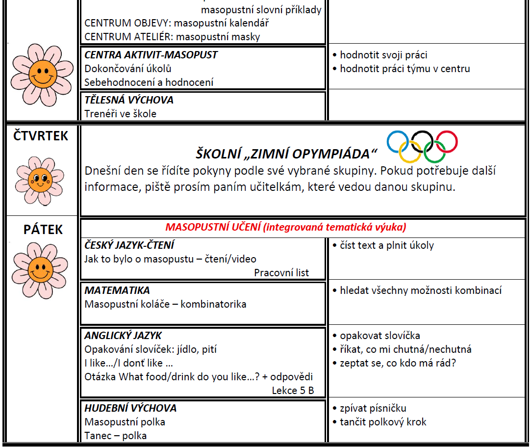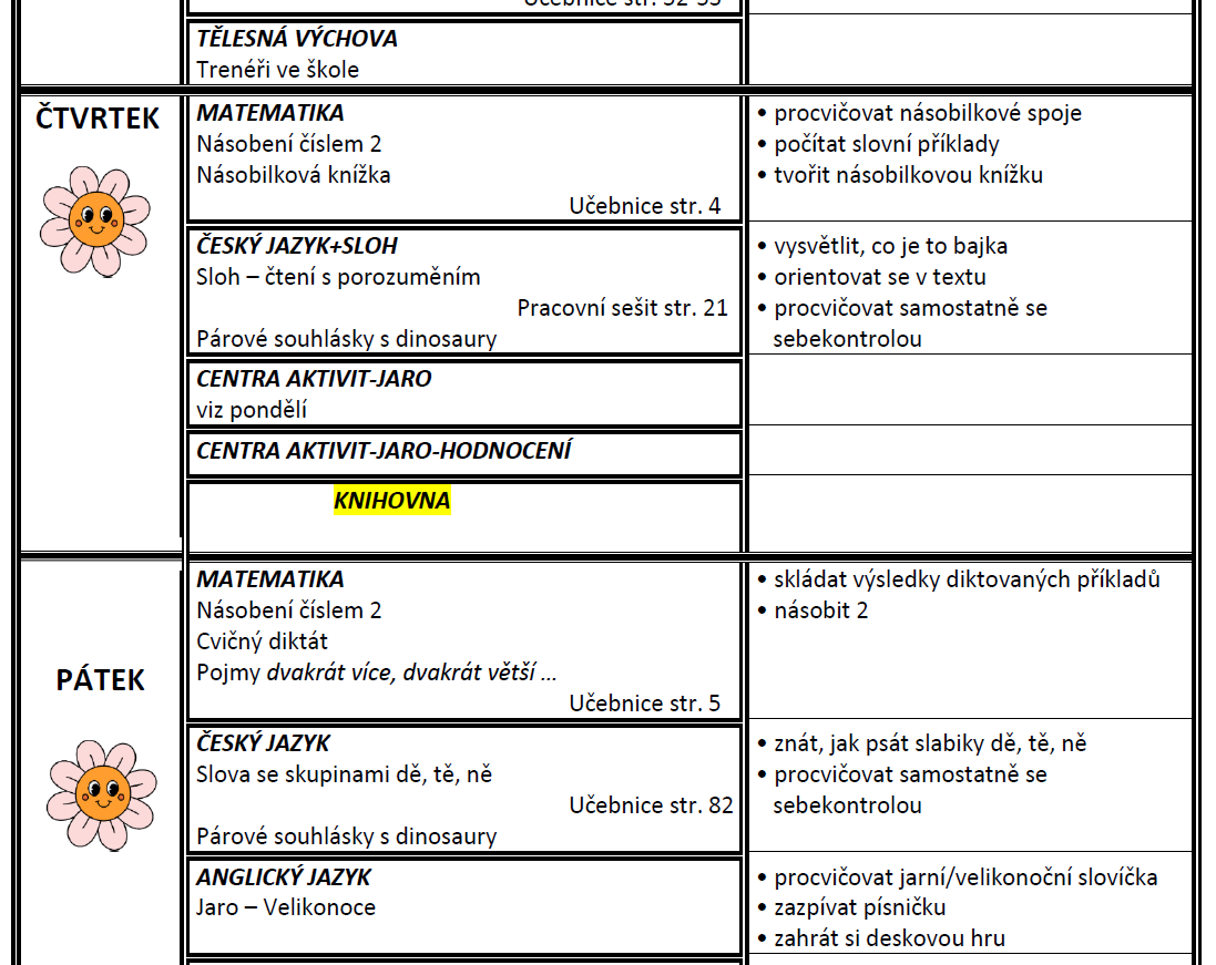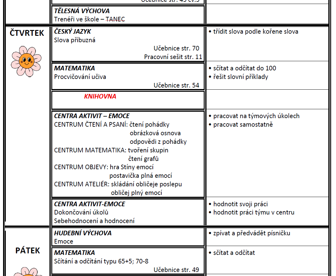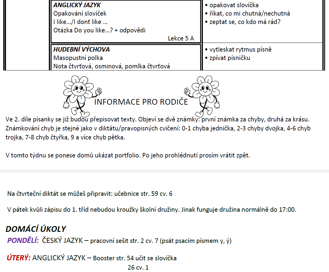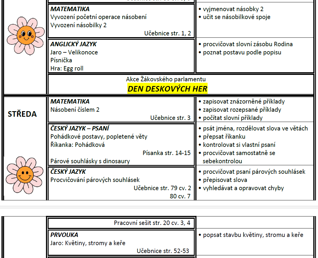 Týdenní plán bude obsahovat učivo na celý týden a výstupy (co by měl žák/žákyně na konci týdne umět).