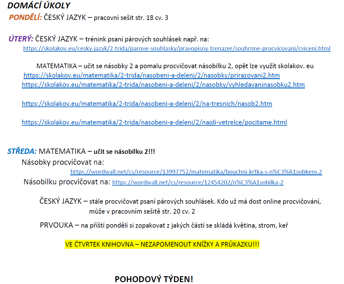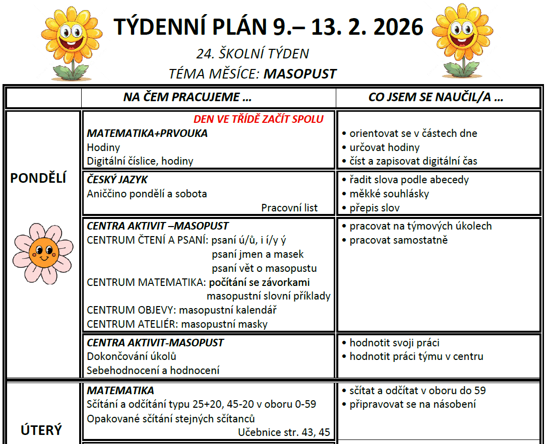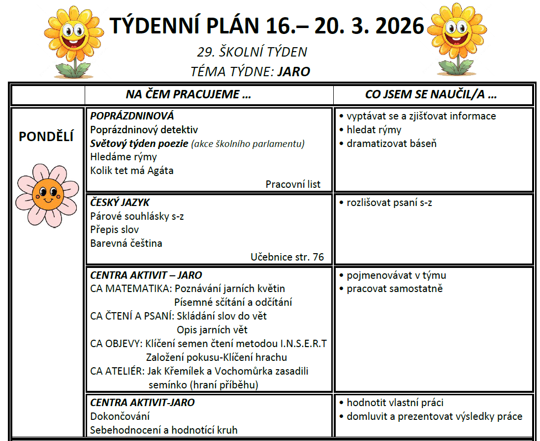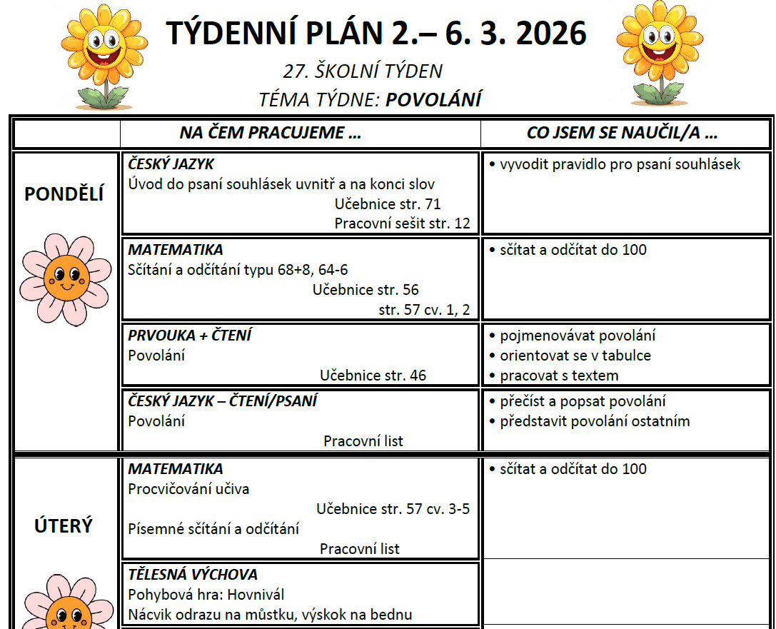 TÝDENNÍ PLÁN
