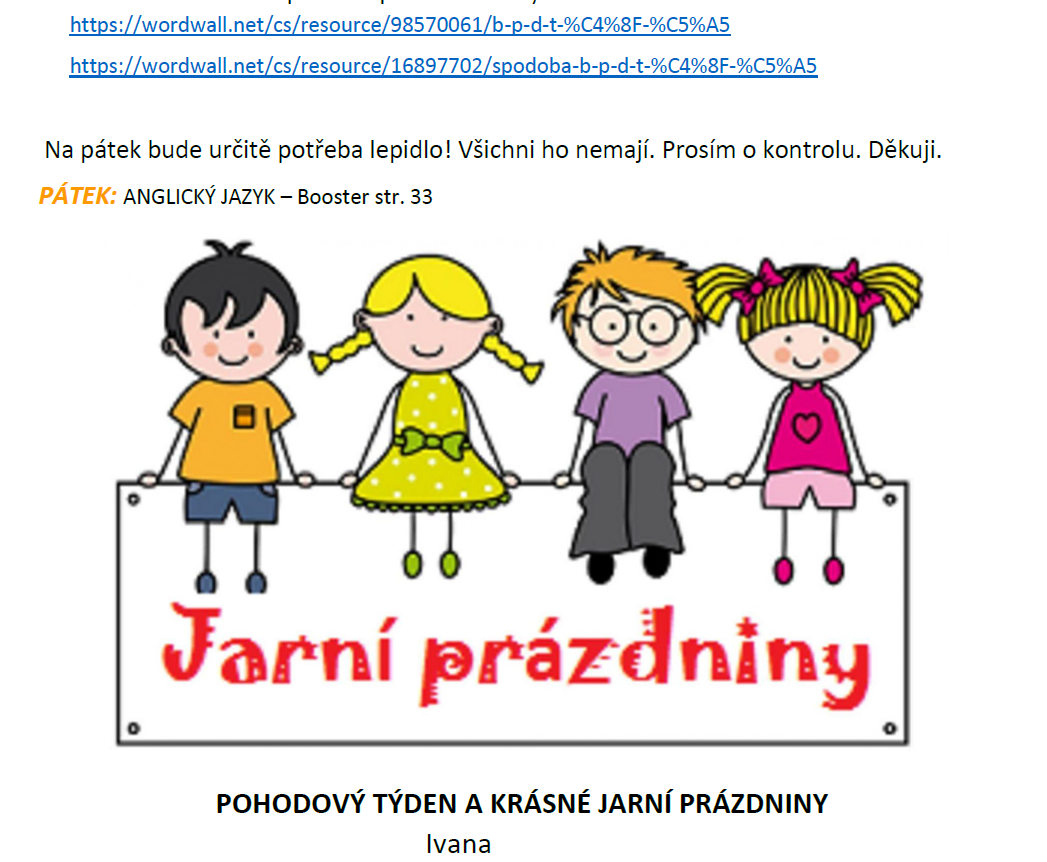 Prosím o vyplnění a vrácení nejpozději do středy 1. dubna. Děkuji.